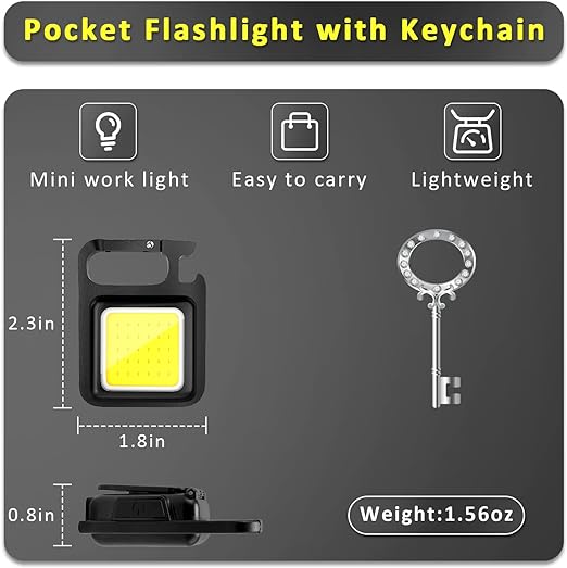 🏆Only $0.99🔥Cob Keychain Work Light Keychain Flashlights 4 Light Modes,Keychain Light Emergency Light with Folding Bracket Bottle Opener for Fishing,Camping and Walking